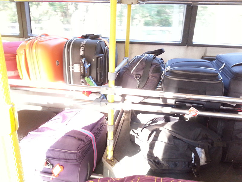 阿福好遵守規定, 25寸喼加一個軟包, 巴士行李架上層, 條柱一左一右果兩件就係啦